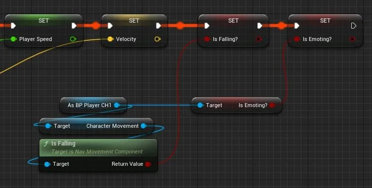 The next step was putting these animations into a state machine within an animation blueprint. I then created a separate state for each animation, with a simple Boolean variable, "is Emoting?", serving as the sole condition.