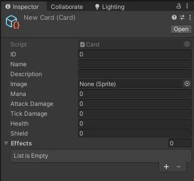 I applied new coding practices, facing challenges as the sole programmer. Managed to create a modular card system for easy in-game card changes, inspired by game industry techniques for scalability and efficiency.