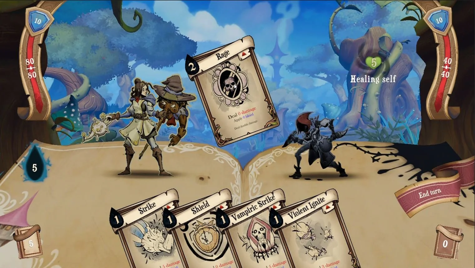 In the game you play as Belle who with the help of teapot and pinokio combat the corruped versions of fairytale characteurs, by fighting them in a “slay the spire” type fashion, and liberating the corrupted tiles on the map. In the game you can buy, unlock, discard or upgrade cards in the shop, to create your own ideal build to triumph with.